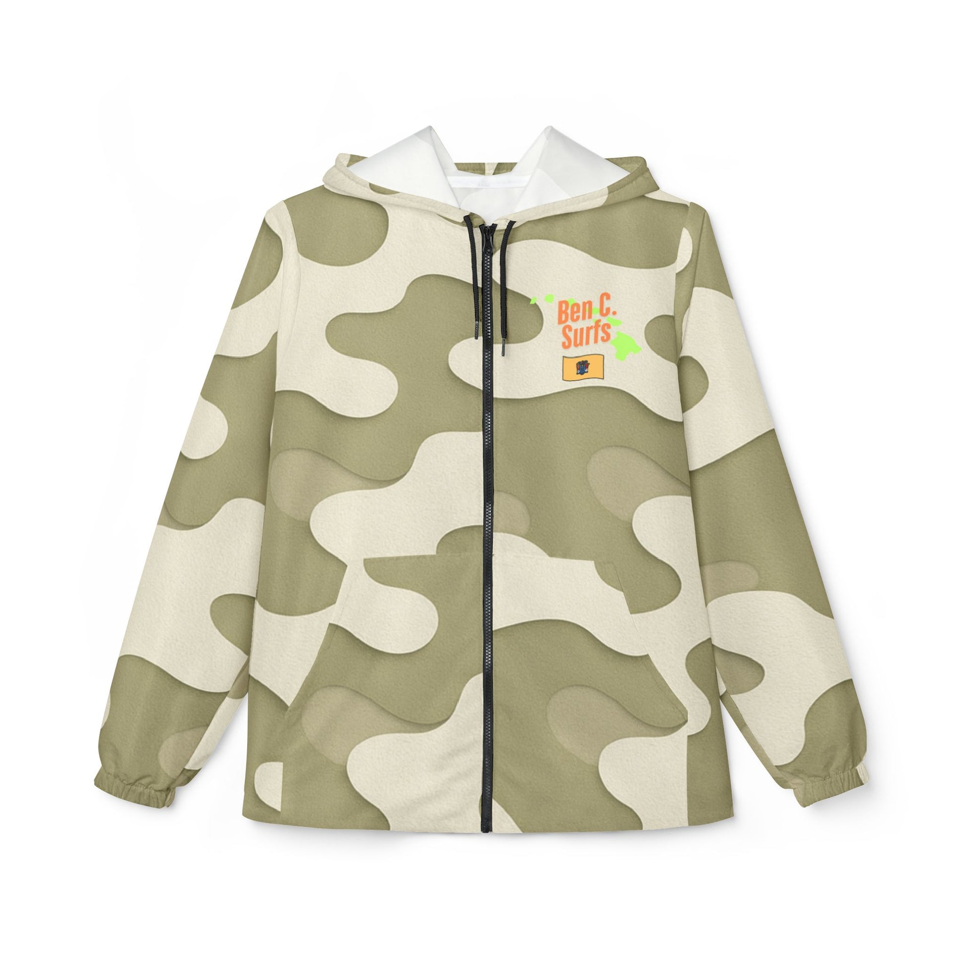 Camo Windbreaker Jacket — Olive Cream Full‑Print Hooded Rain Shell