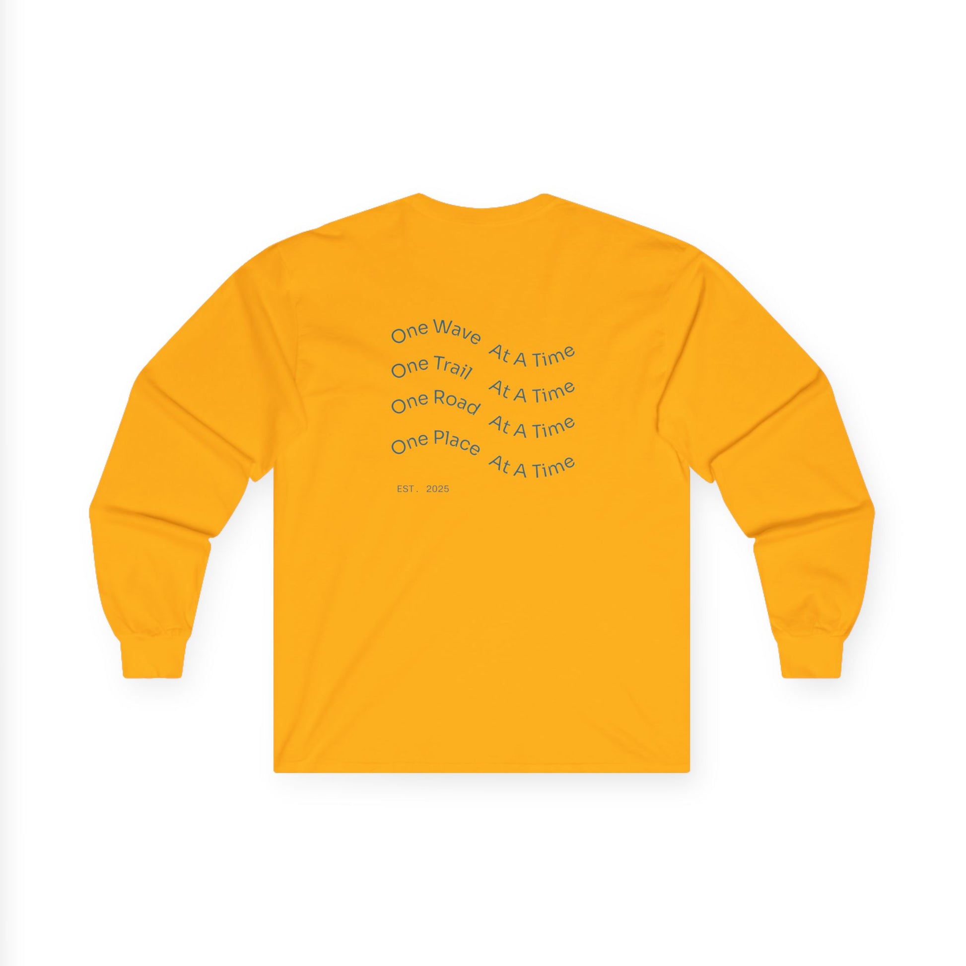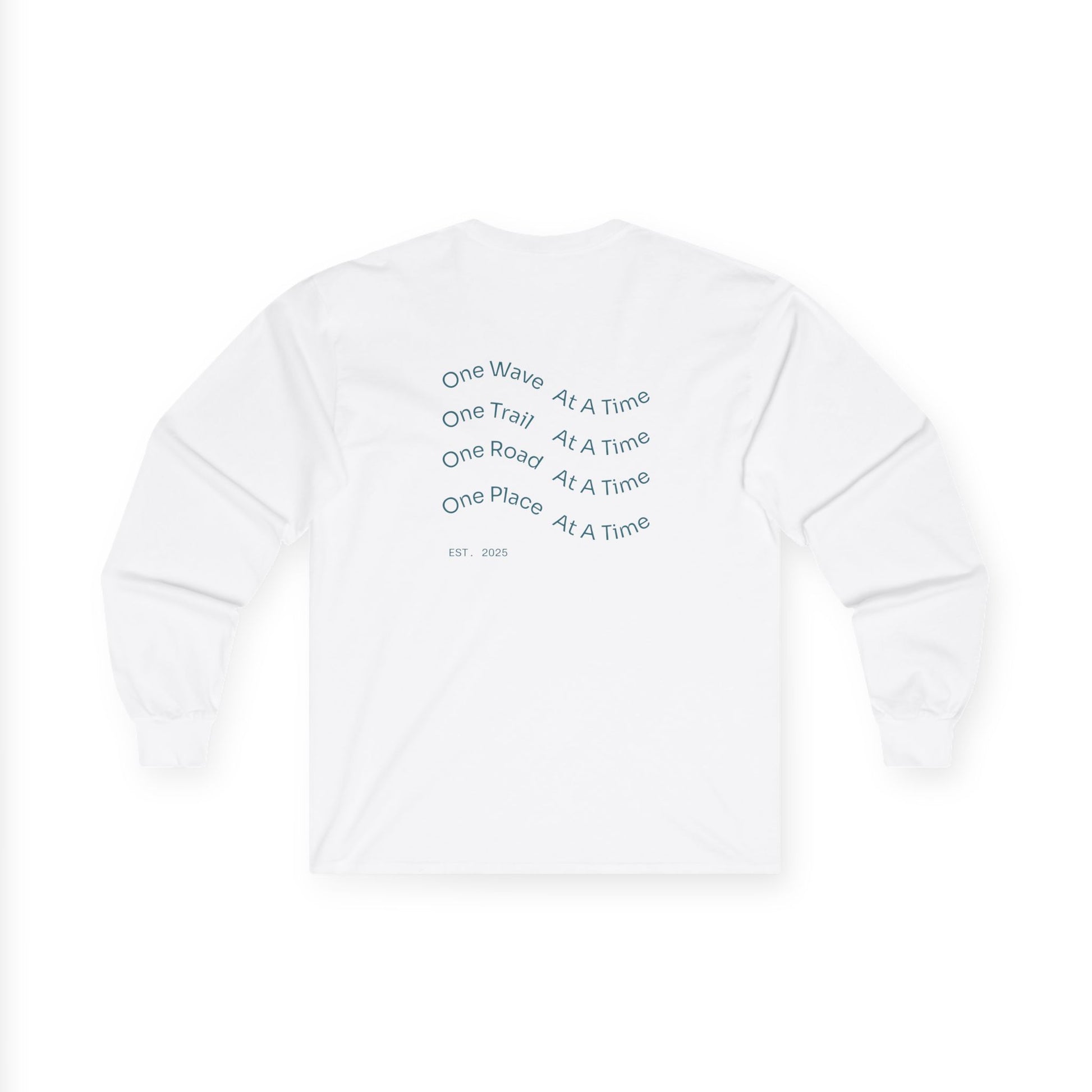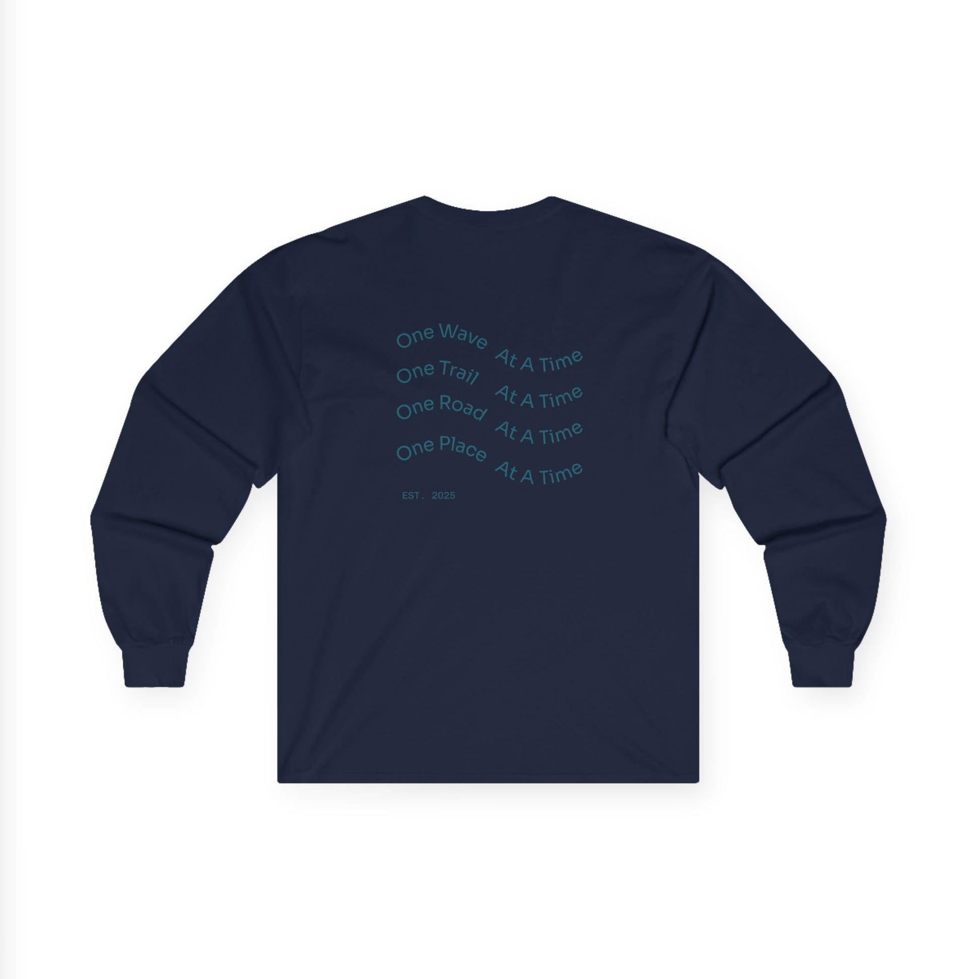 Long Sleeve Tee — "One Wave, One Trail, One Road, One Place"