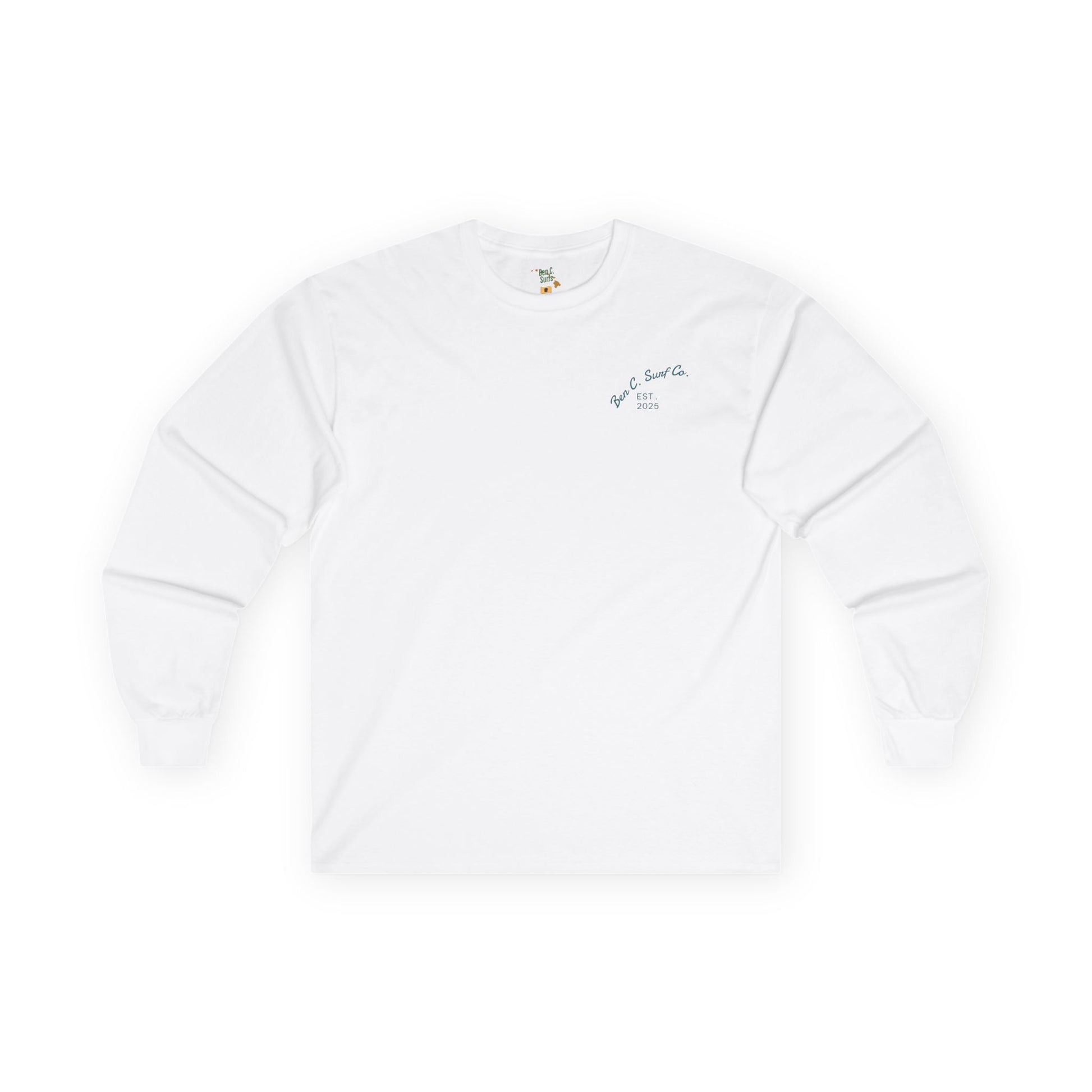 Soft, breathable long-sleeve made from 100% tightly spun cotton. The front carries a small, understated chest script while the back features a gentle wavy text layout reading leisurely reminders — a quiet, coastal-inspired vibe that slips easily into everyday wear. The classic fit, wide rib collar, and ribbed cuffs create a familiar, lived-in silhouette that layers under jackets or stands alone on cool evenings. Wear it for slow mornings by the water, evening bonfires, or days when you want a calm, intentional look.